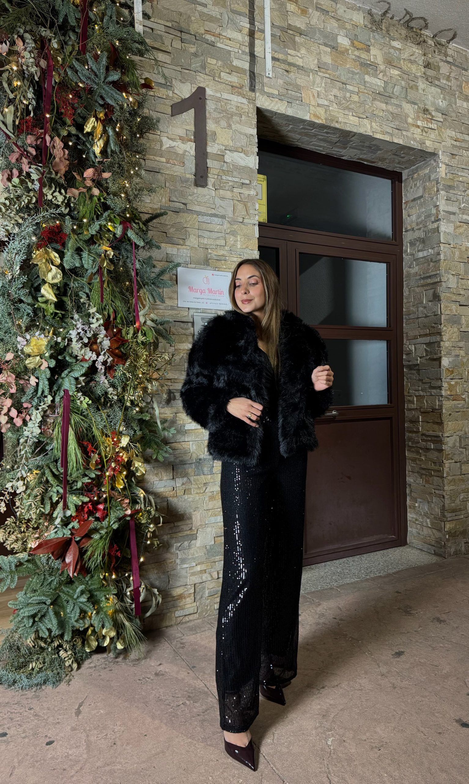 Se abrocha con corchetes y lleva bolsillos. El interior está totalmente forrado, es super agradable y no desprende pelo.