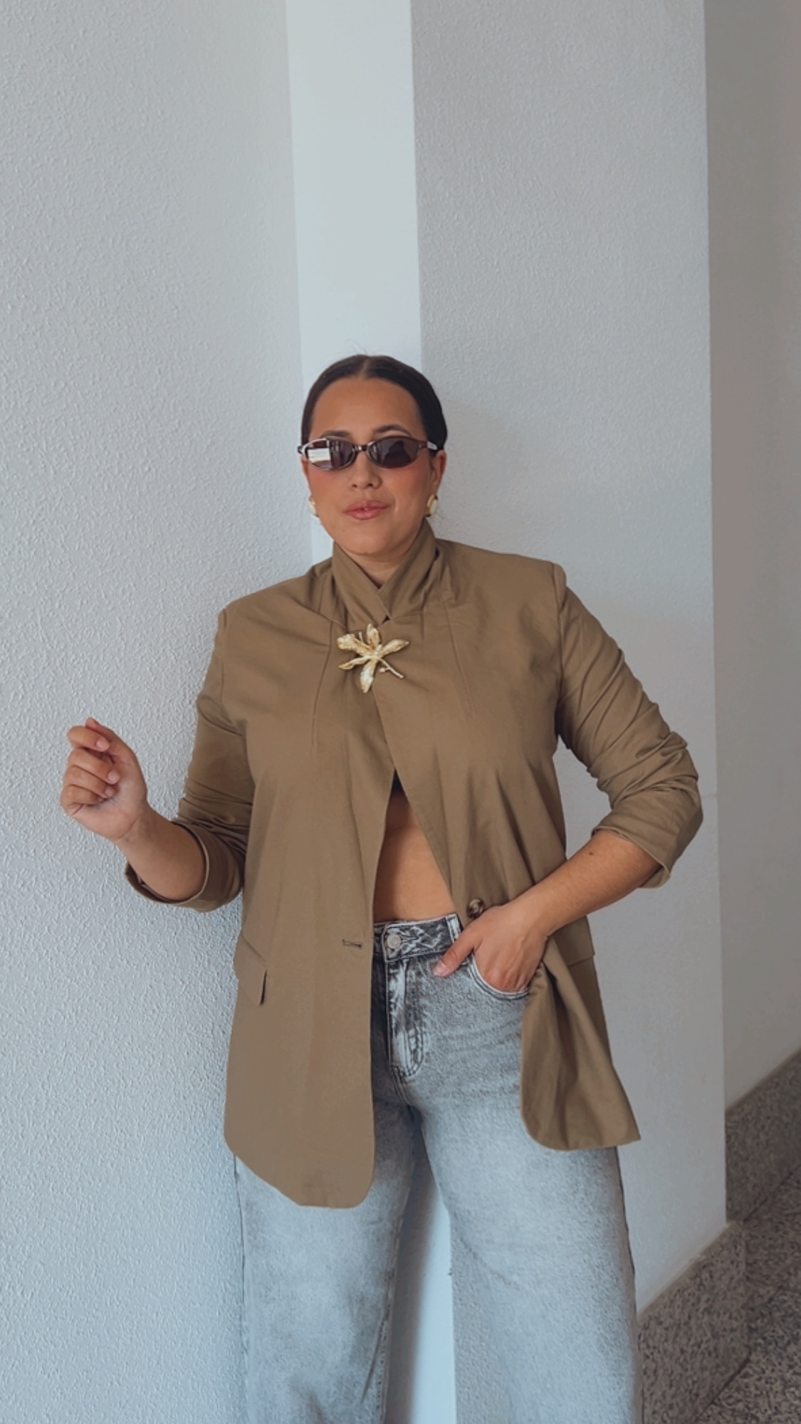 Blazer de manga larga en color un color topo precioso y atemporal, será la prenda ideal para elevar tu look esta temporada.