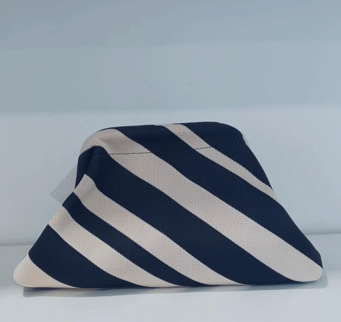 Bolso de mano de tejido de rayas en color negro y crudo.