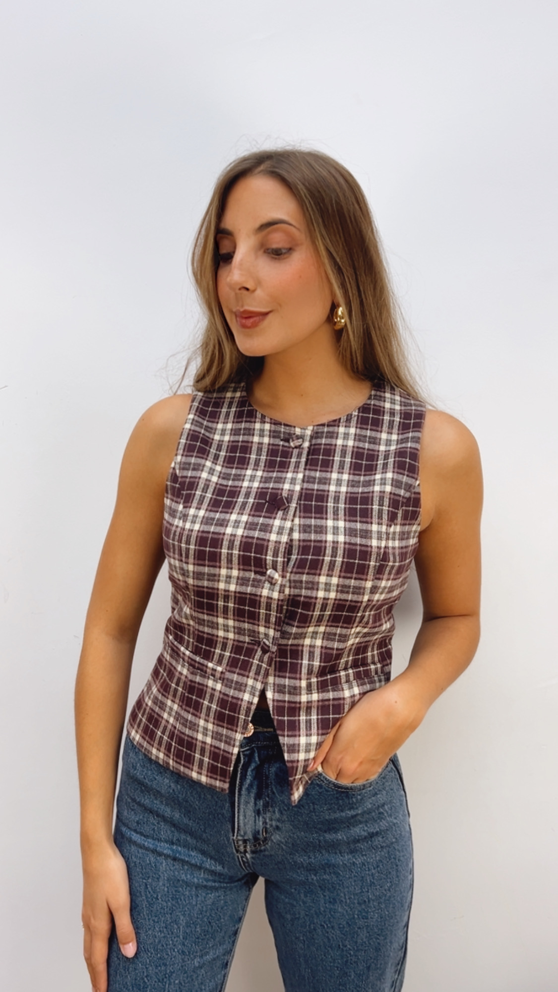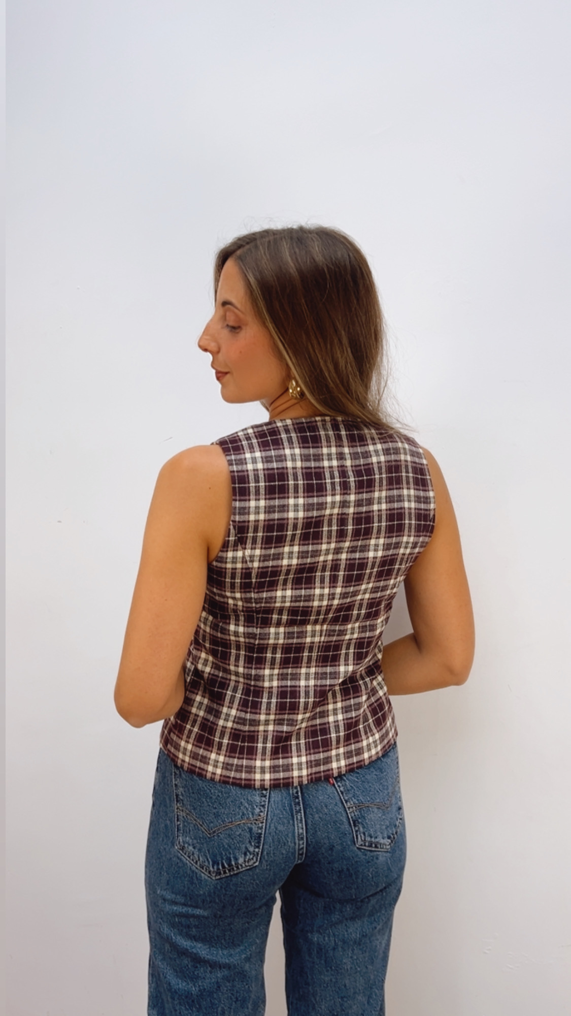 Chaleco de cuadro escocés con el interior forrado. Lleva botón y sienta como un guante!