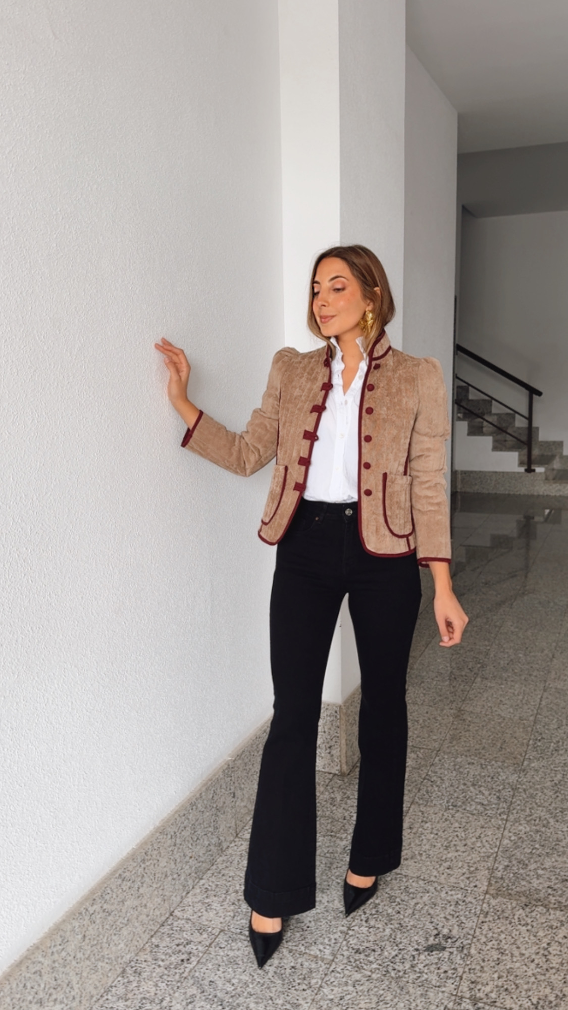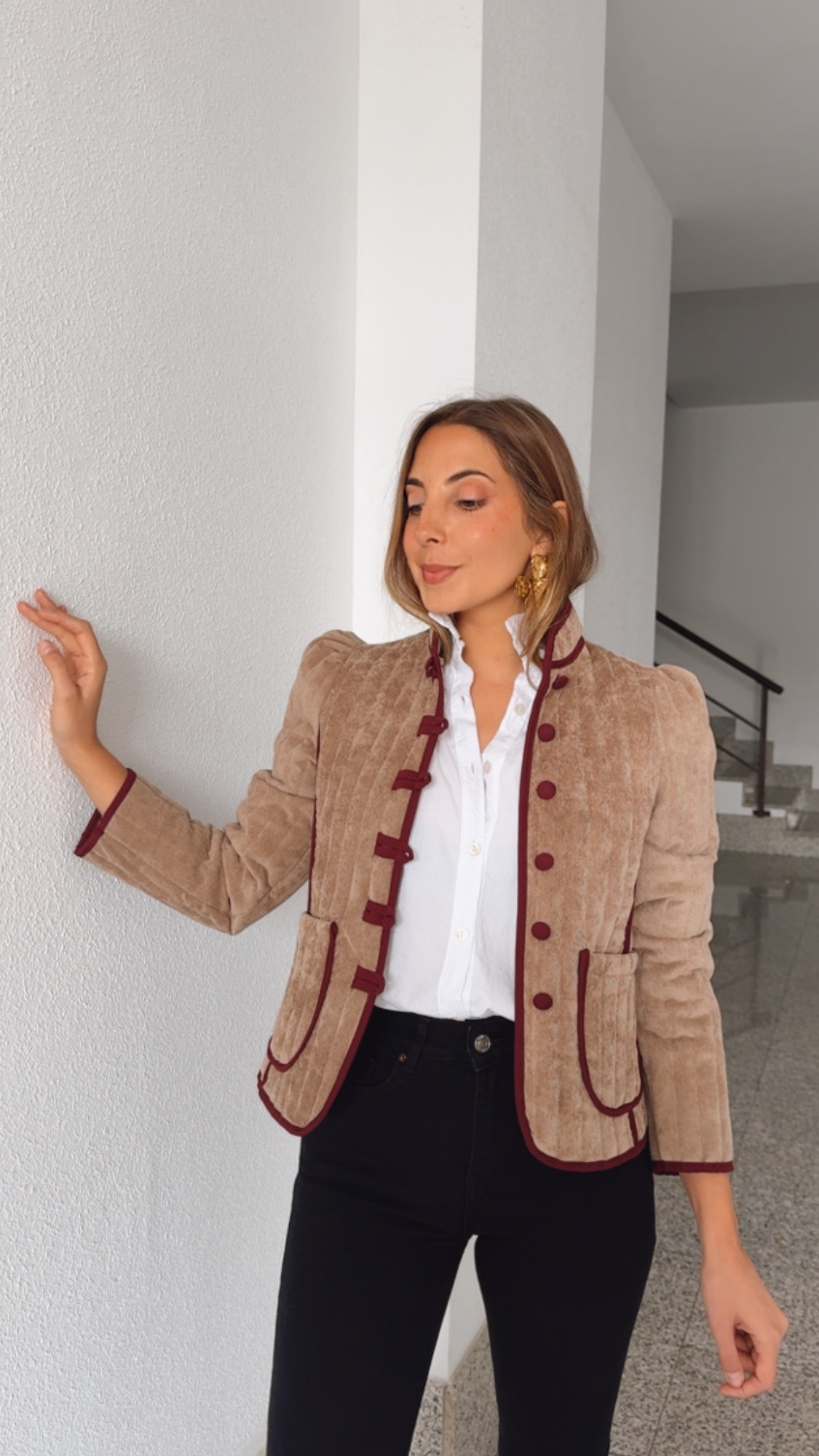 Chaqueta acolchada súper calentita de micro en color beige con los vivos en Burdeos es espectacular combina con cualquier look y le dará ese toque de estilo diferente.