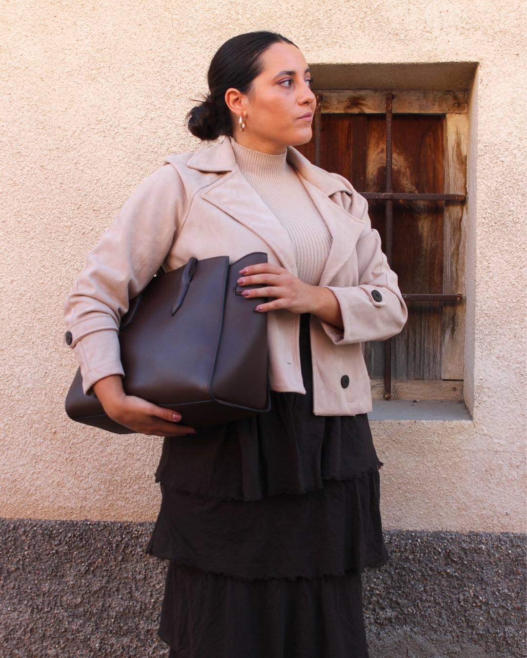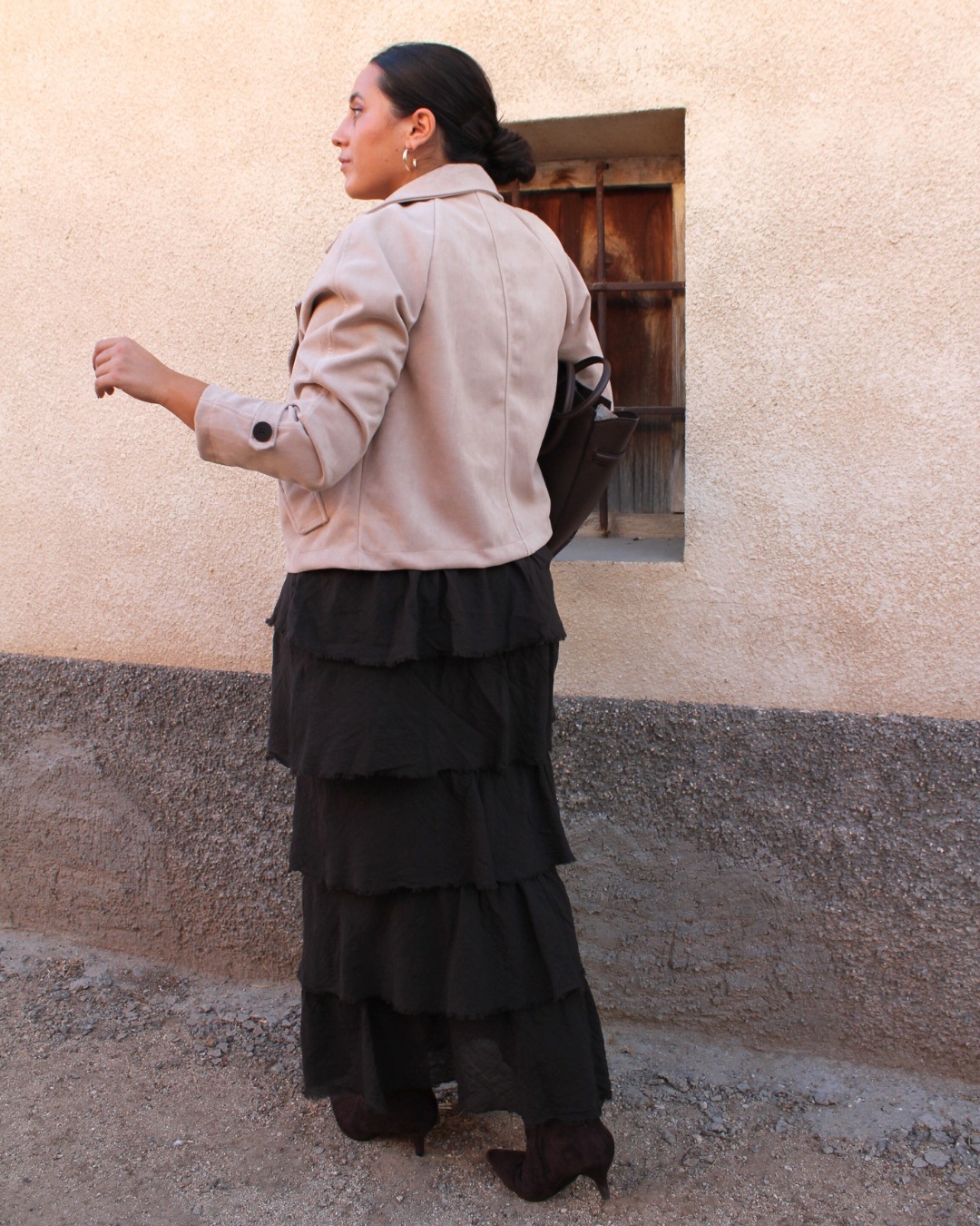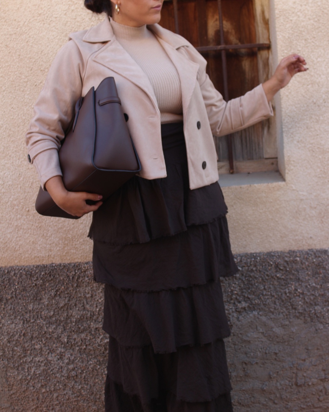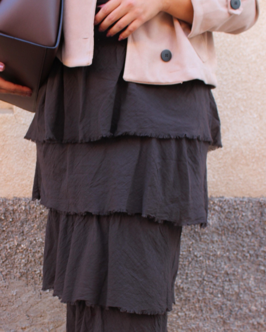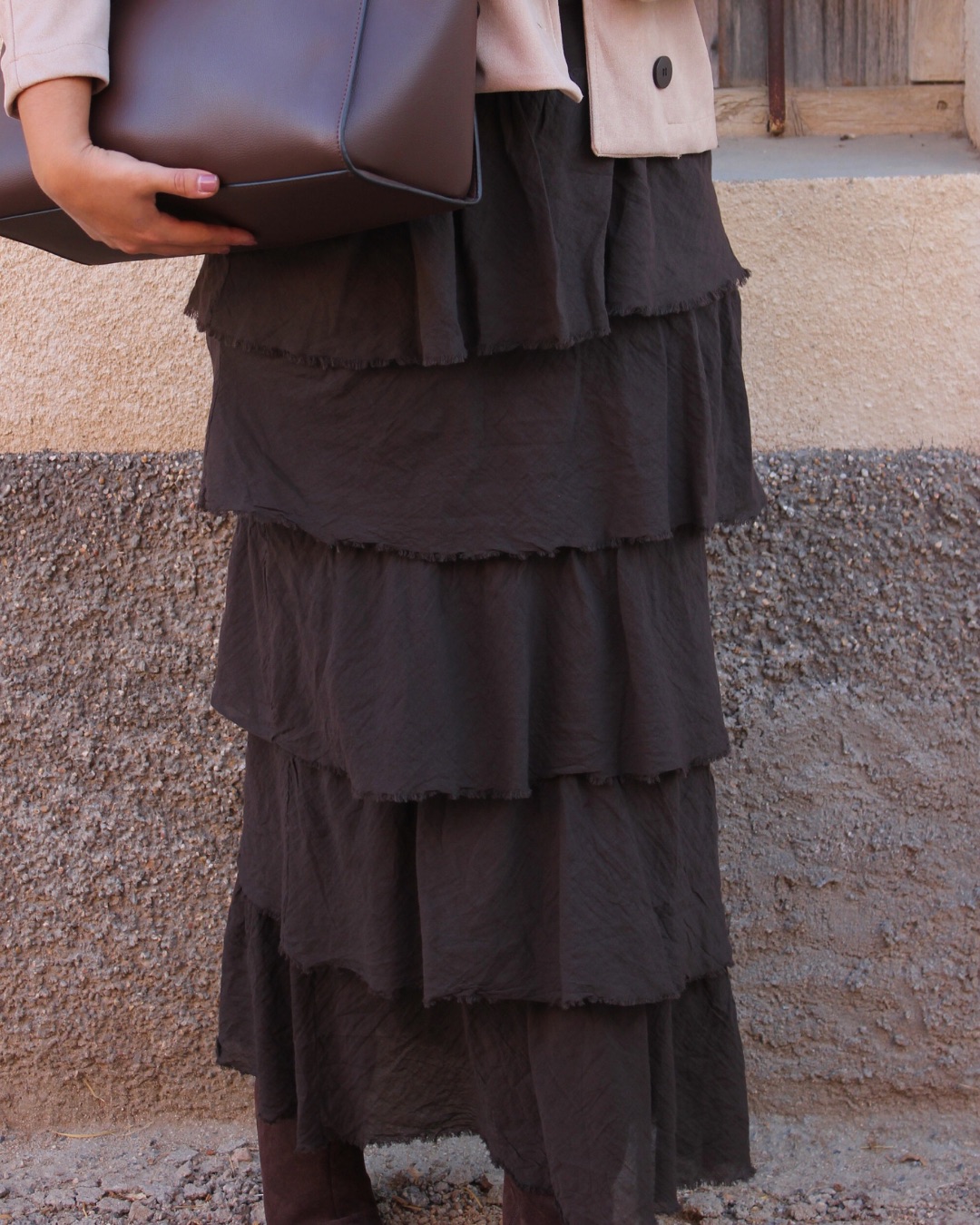 Falda de volantes en color marrón chocolate. Tiene un tejido y un tacto ideal y esta en super tendencia!