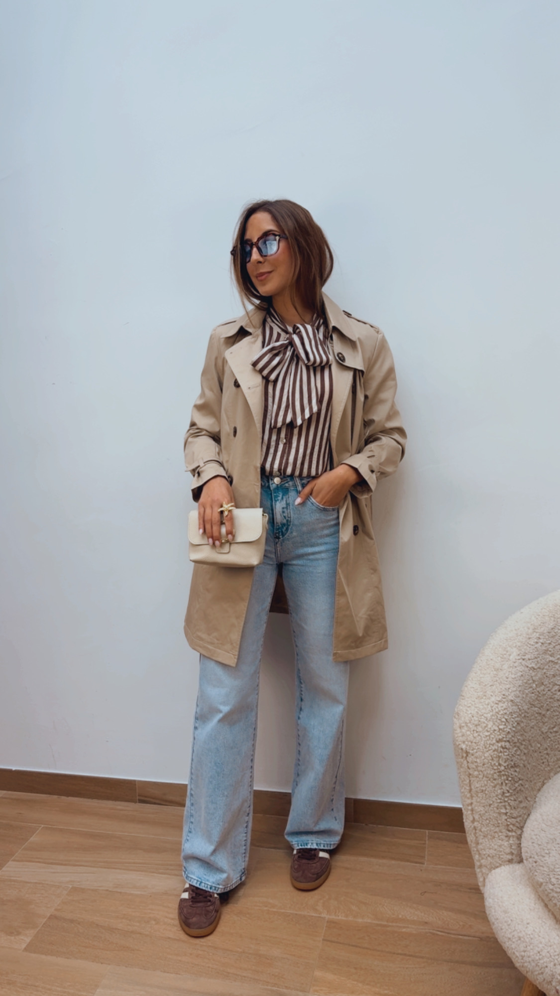 Perfecta para completar looks de entretiempo con un toque sofisticado y versátil.