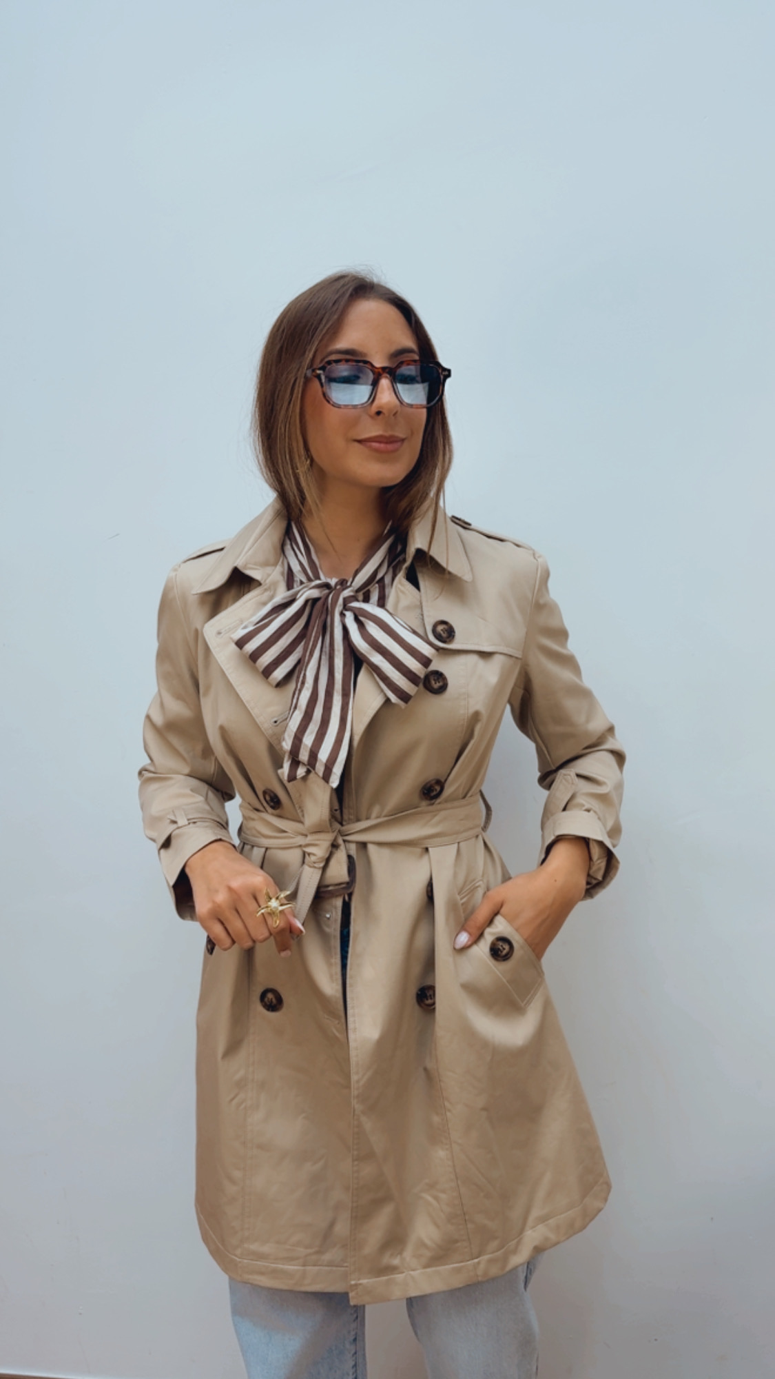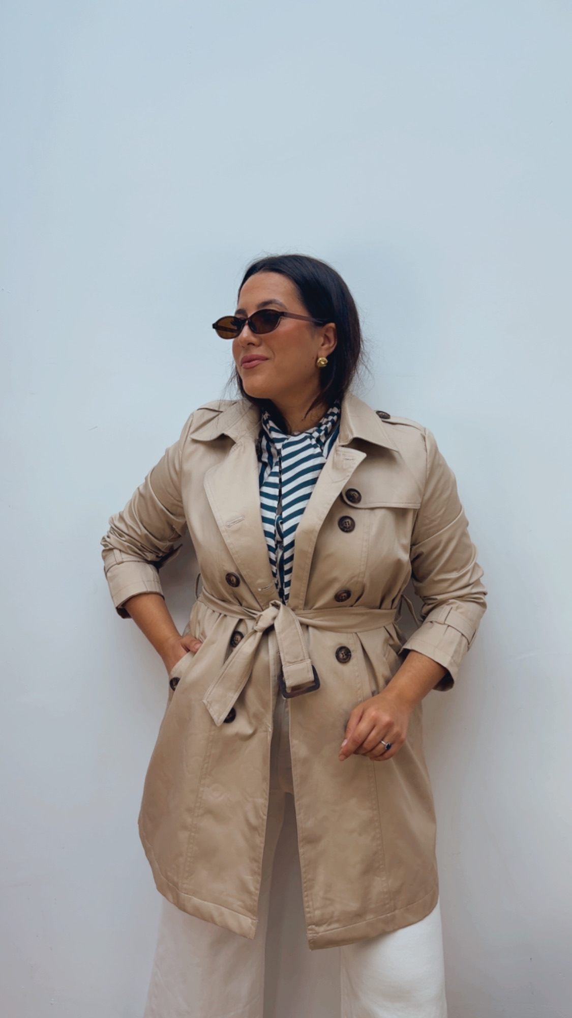 Elegante gabardina en color beige, un básico imprescindible y atemporal para cualquier temporada. De manga larga y totalmente forrada, garantiza comodidad y un acabado impecable.
