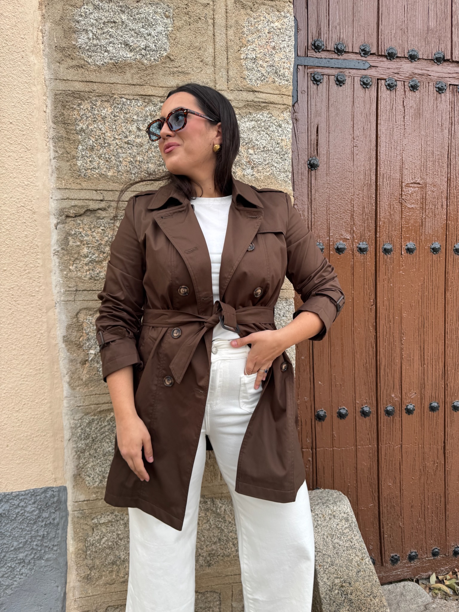 Clásica y elegante gabardina en color chocolate , una prenda atemporal imprescindible en cualquier armario. De manga larga y totalmente forrada, ofrece comodidad y un acabado impecable.
