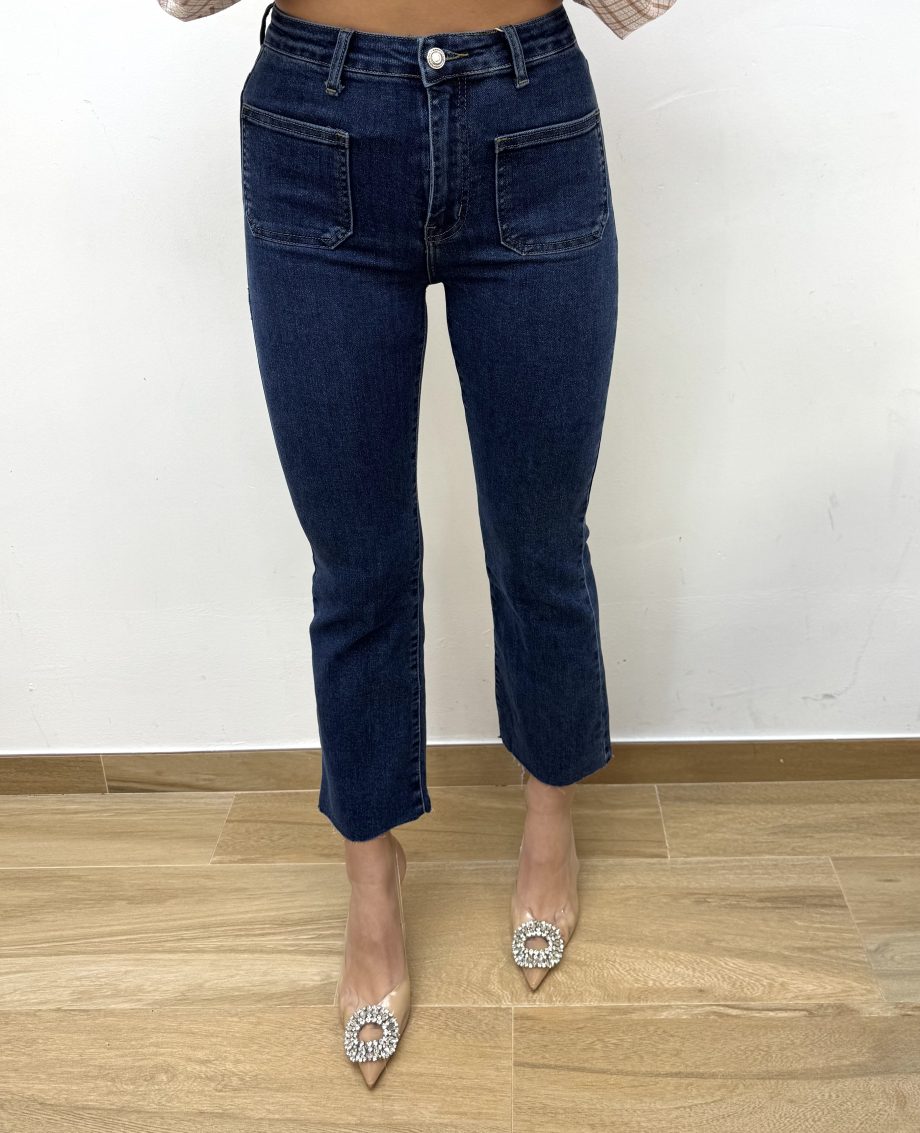 Pantalón de corte flare, se abrocha con botón y cremallera. Lleva el detalle de los bolsillos delanteros y traseros y sienta como un guante!