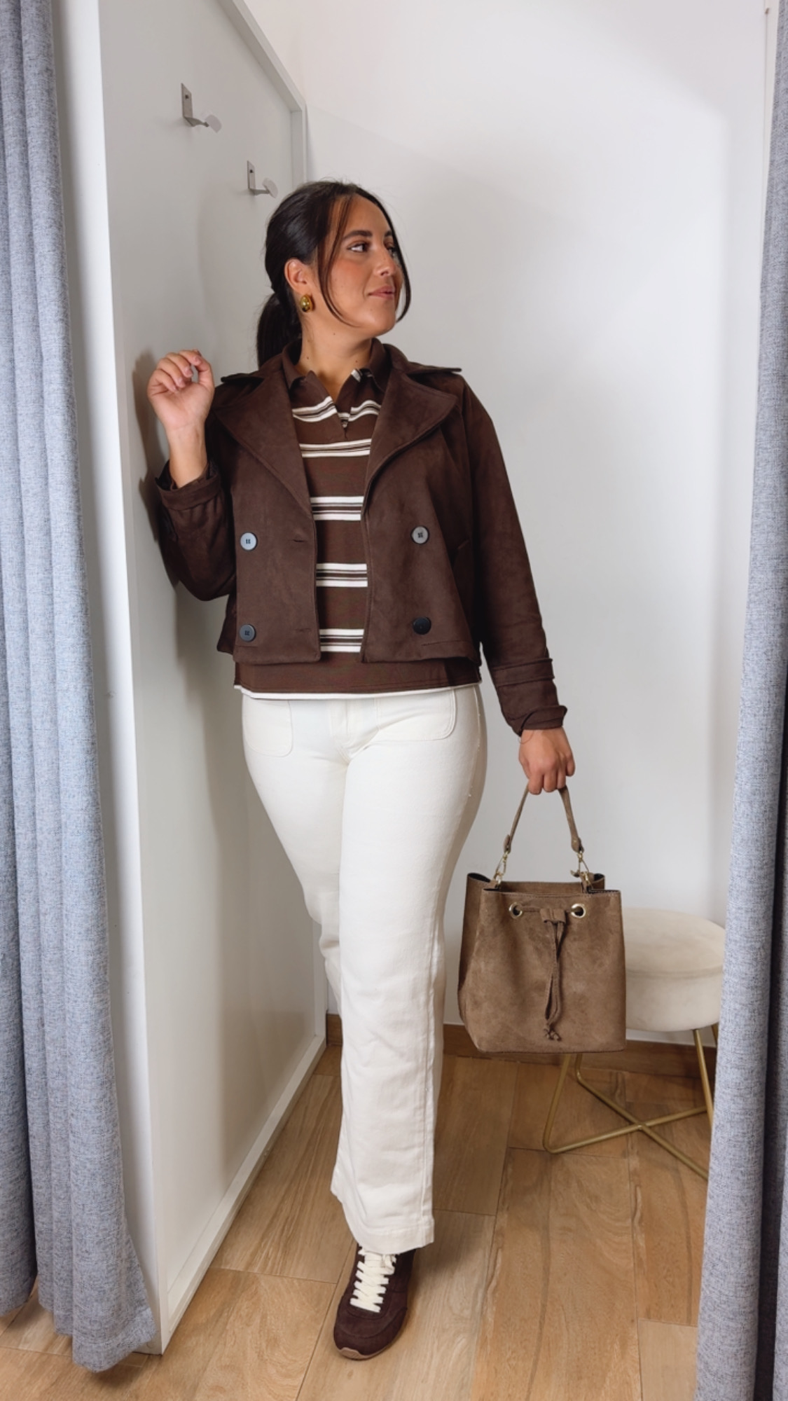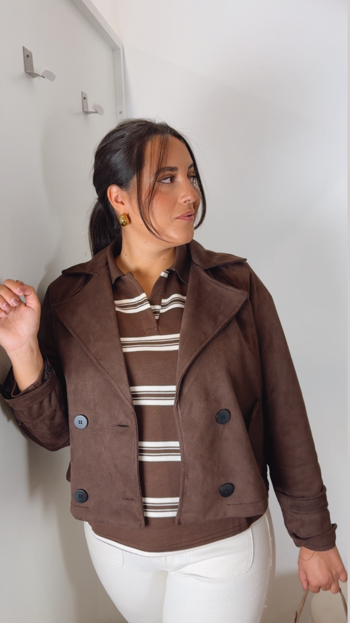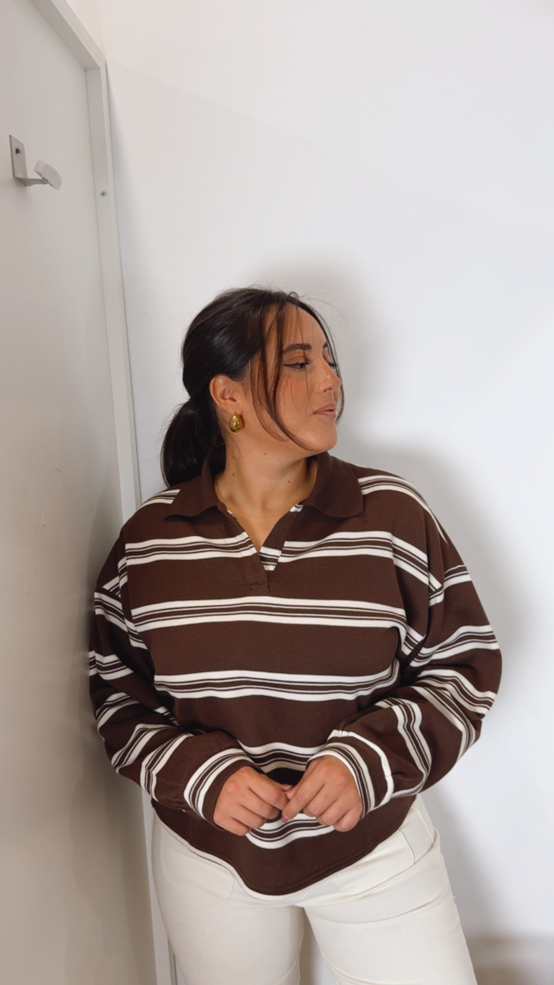 Jersey polo en rayas marrón, chocolate y beige .Sienta espectacular. Tiene un tejido ideal. Una prenda muy tendencia y que no puede faltar en tú armario .