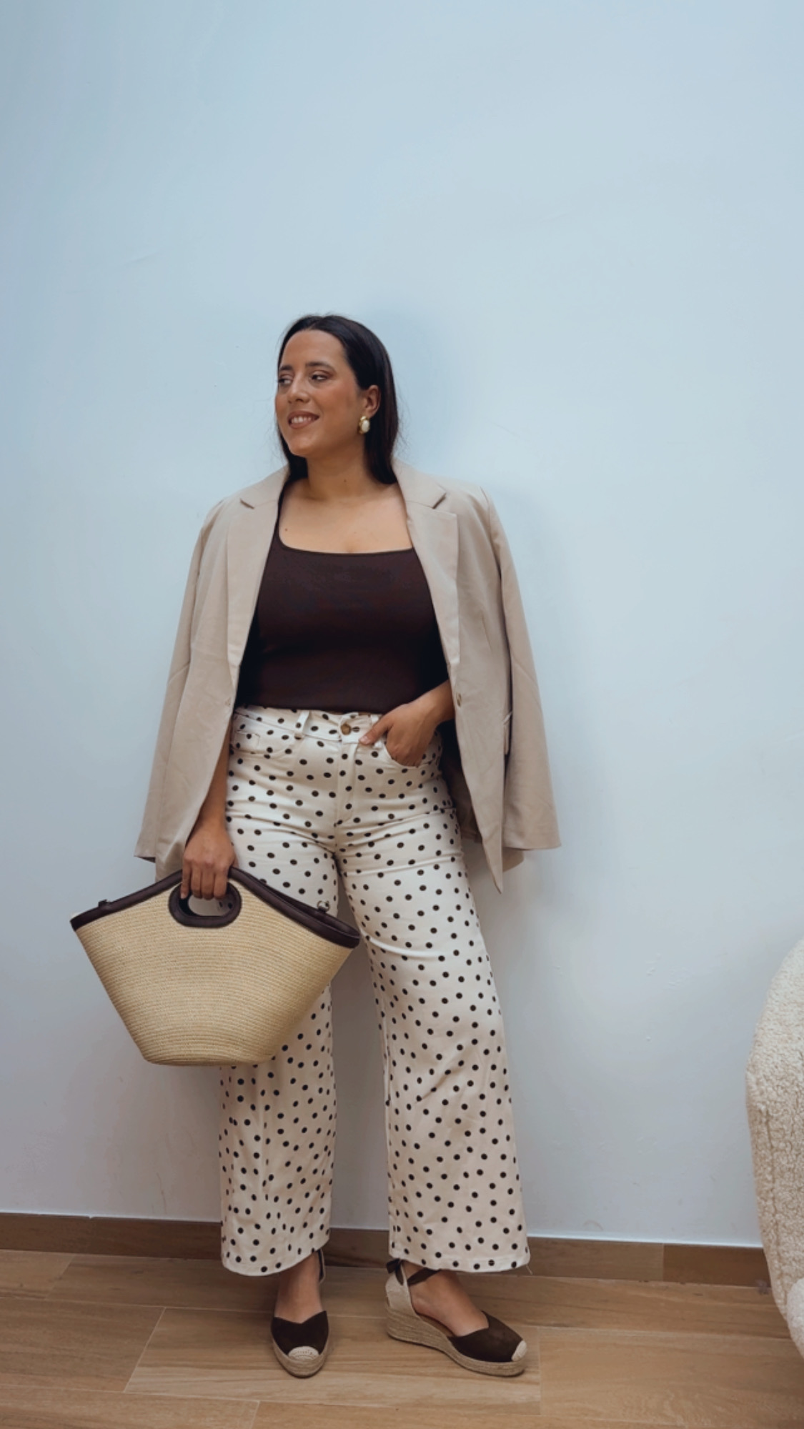Pantalón Beige Lunares Chocolate